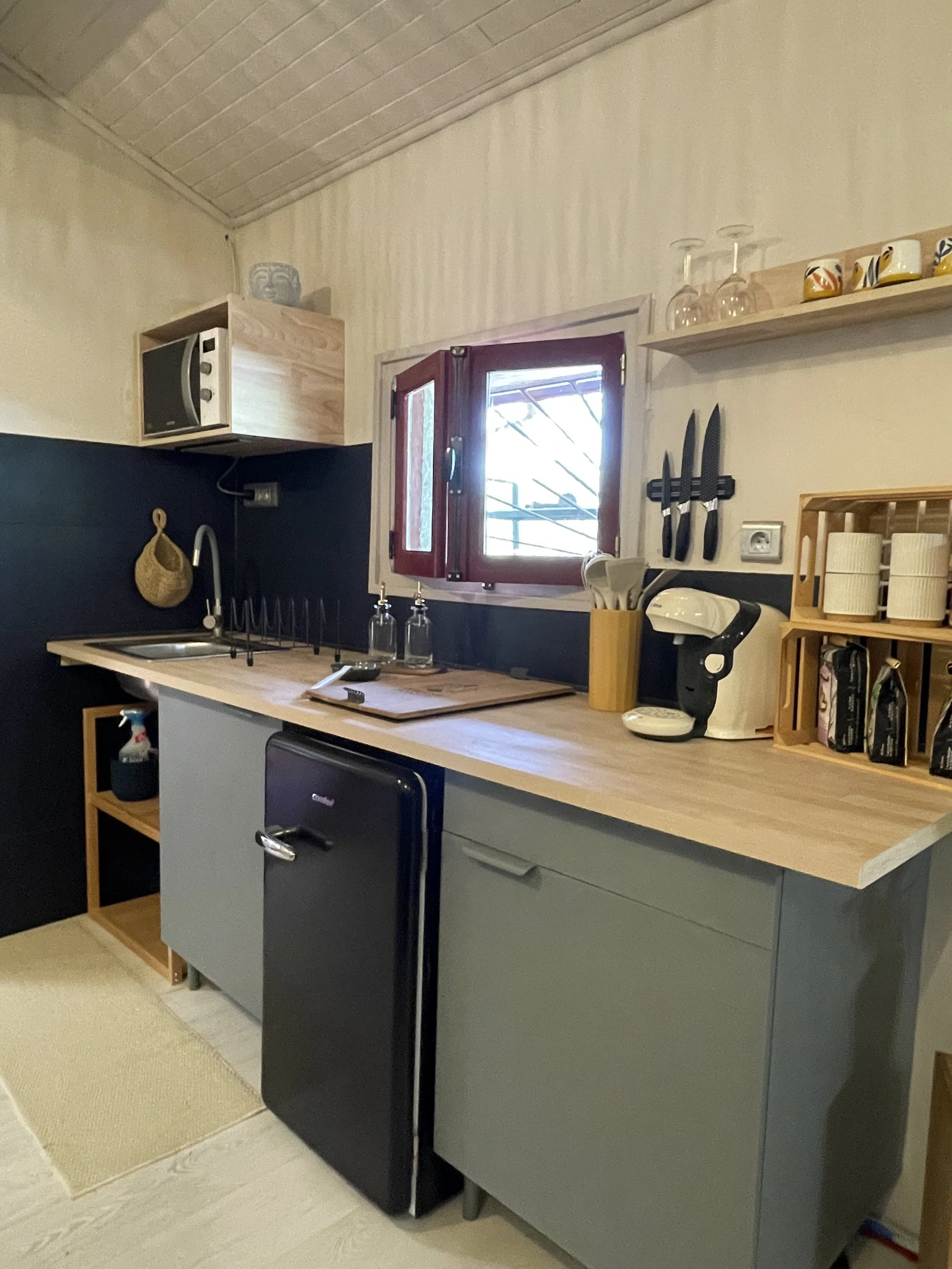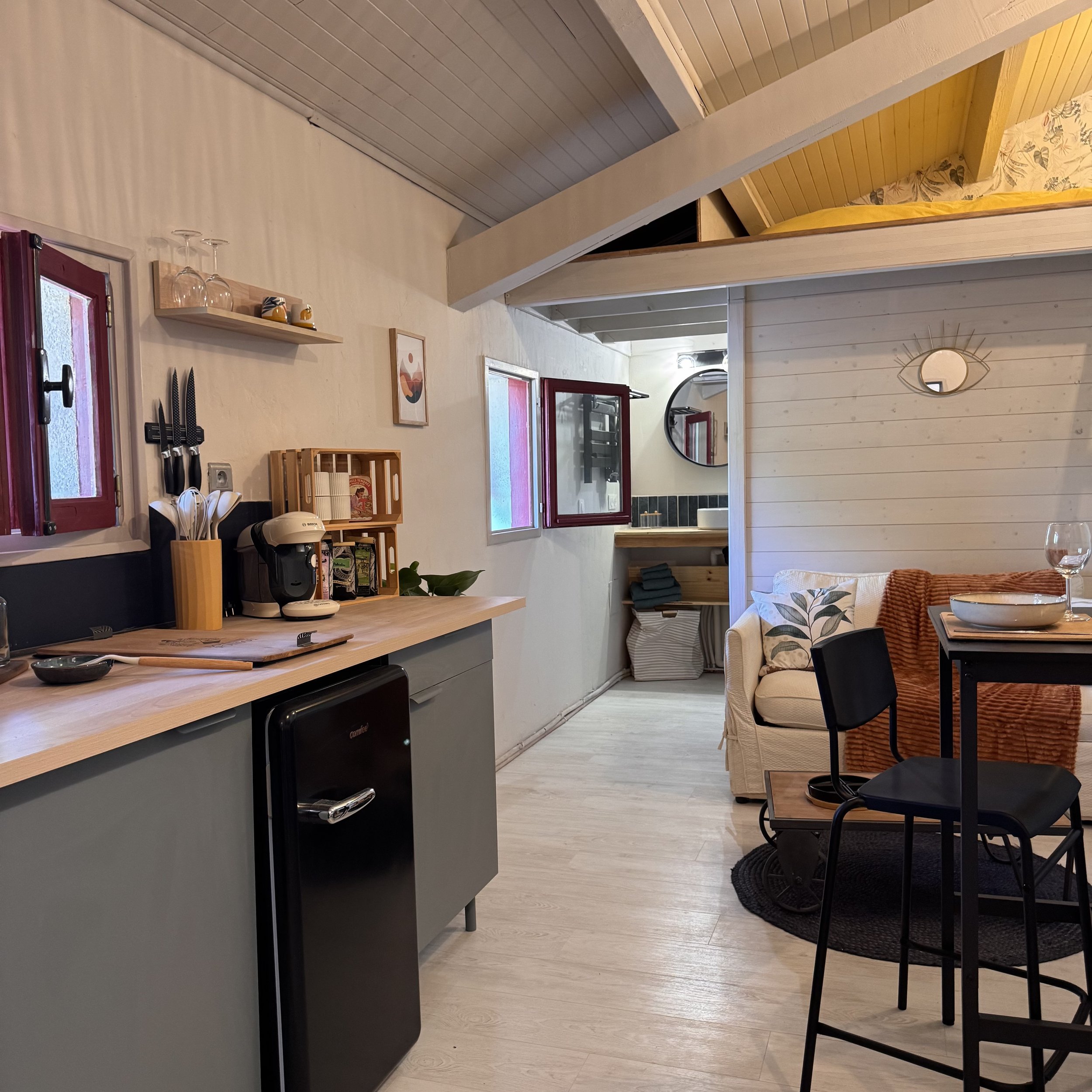 Pensé pour accueillir 2 personnes, notre petit havre de paix conjugue authenticité, confort et intimité. Venez profiter d’un lieu chaleureux et entièrement équipé, idéal pour se ressourcer.